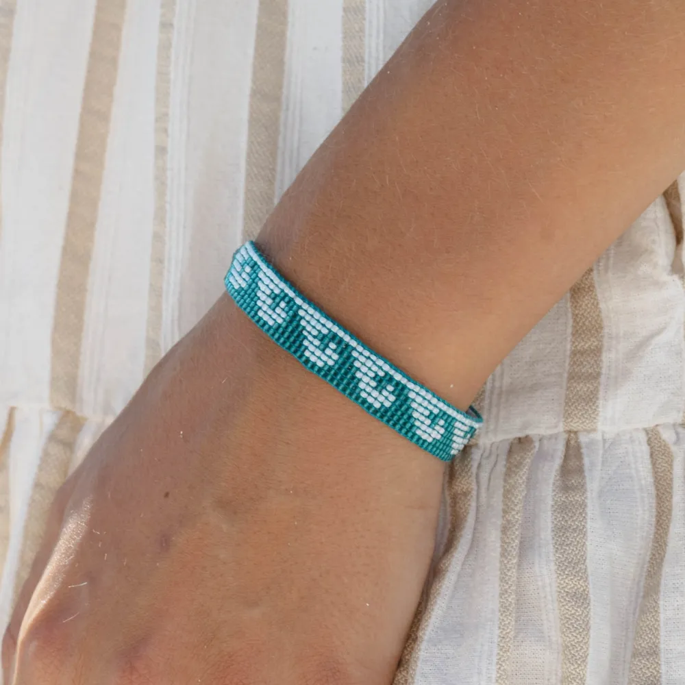 Pinapple Island: "Drift with the tide and feel the rhythm of the sea. The Melayang Wave Beaded Bracelet, named after the Indonesian word for “drift,” is handwoven with a flowing wave design that captures the calm, effortless motion of the ocean. A delicate piece for anyone who feels most at home by the water."