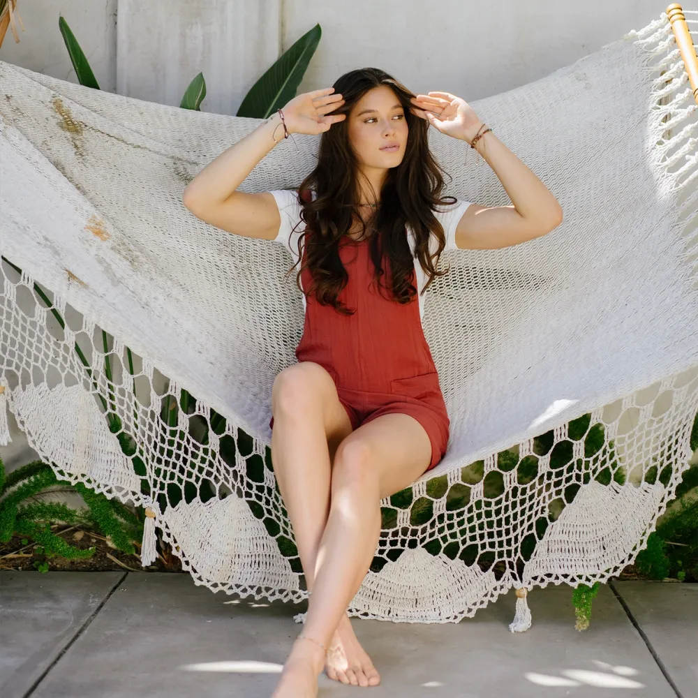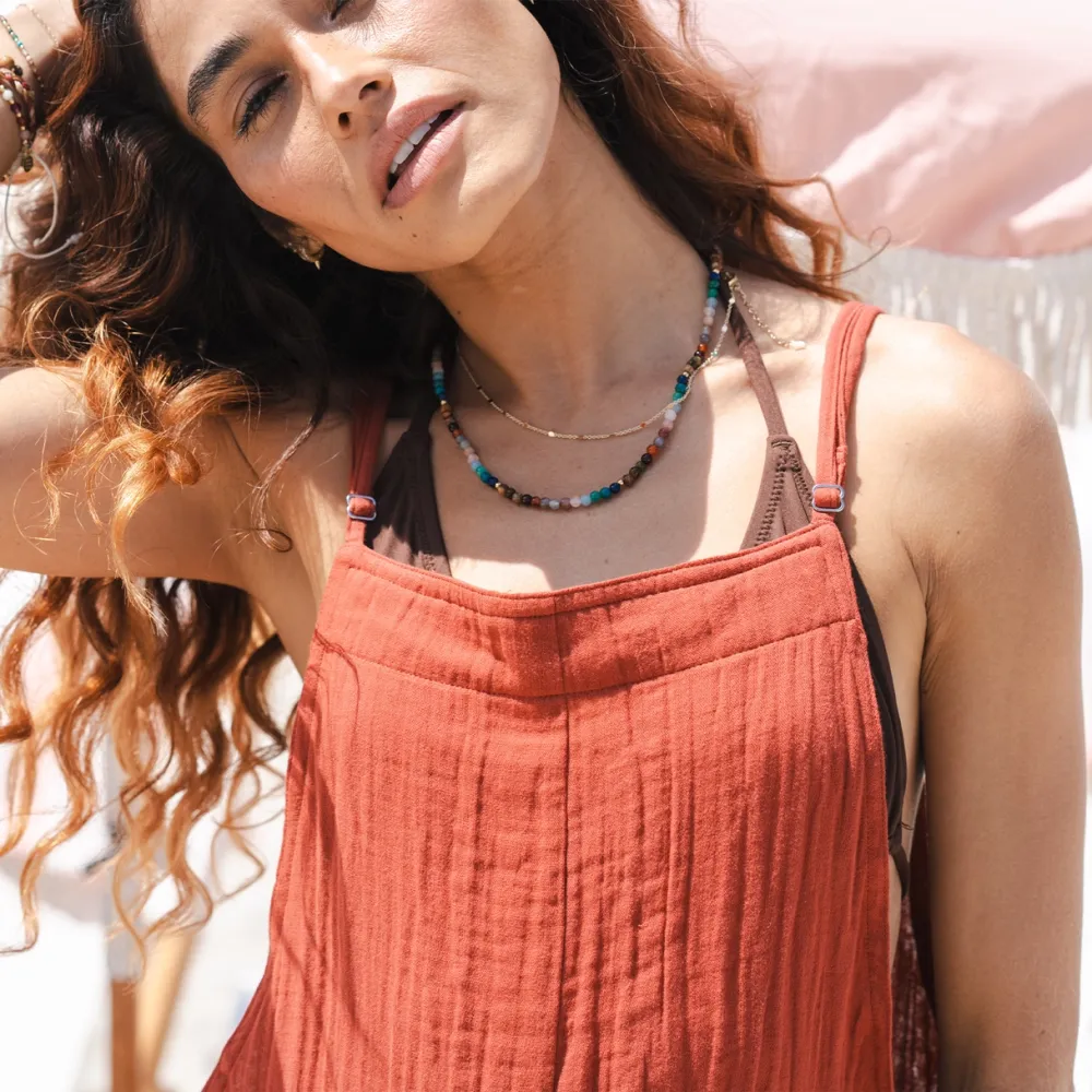 Lotus and Luna: " Meet our one-piece Romper, a timeless wardrobe staple reminiscent of those laid-back overall feels. Crafted from 100% Cotton and featuring adjustable straps, this Romper offers unparalleled versatility. Its functional pockets make it an ideal choice for a leisurely picnic in the park or a refreshing bike ride by the beach. "