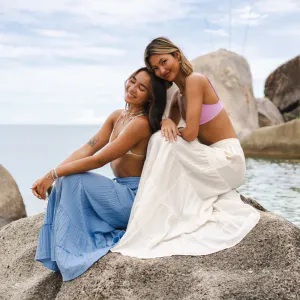 Lotus and Luna: "Indulge in island-inspired vibes with our tiered cotton skirt! Complete with a drawstring waist and convenient interior pockets, this skirt is your passport to easygoing style. Get the beach look and pair it with a tank top, or elevate the charm with a cruisin' crop for a seaside soirée"