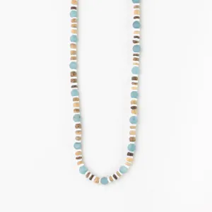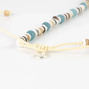 * Pinapple Island: "Inspired by the dramatic cliffs and blue seas of Manta Point in Nusa Penida, this necklace blends natural stone, wood, and puka shell beads for the ultimate surf aesthetic. Adjustable to wear as a choker or longer style, it’s an easy piece to layer with your Pineapple Island favourites or wear solo for a laid-back vibe. !"